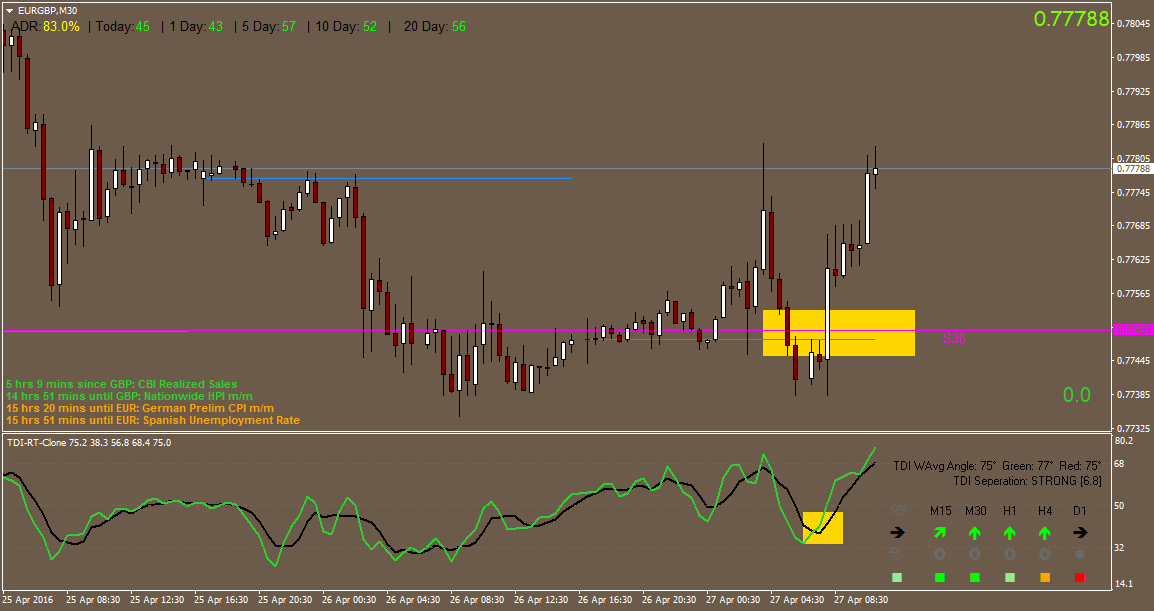 El indicador TDI no es imprescindible en la estrategia, pero muy útil como señal de entrada o pistoletazo para tus operaciones. Es útil utilizarlo para;