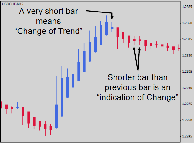 - La barra negativa es mucho más corta que la barra anterior o cambia a una barra negativa al cierre.