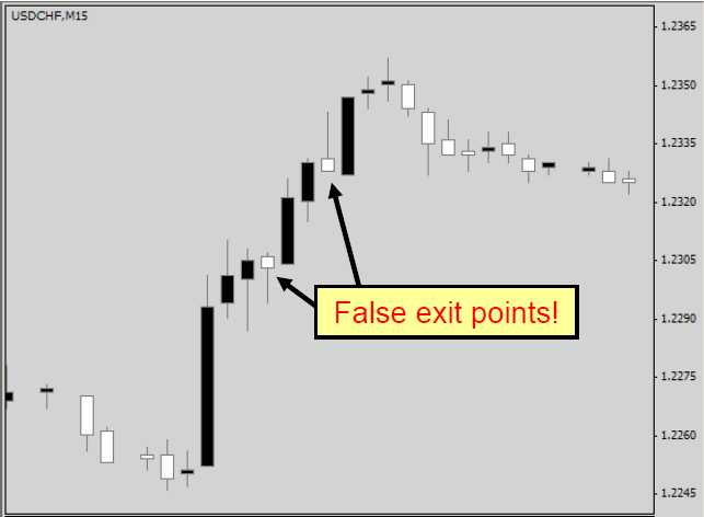 - La barra positiva es mucho más corta que la barra anterior o cambia a una barra negativa al cierre.
