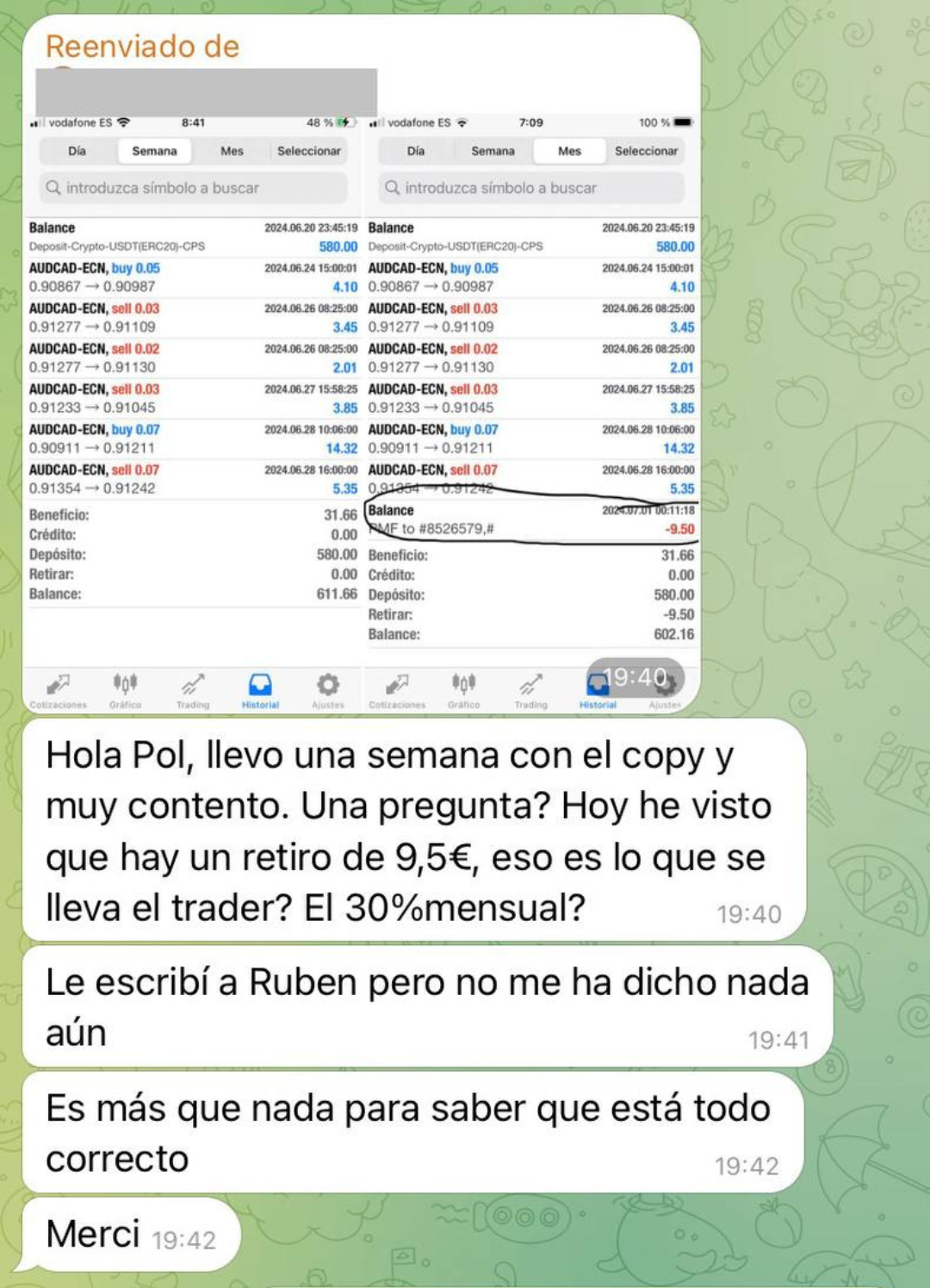 "Nunca había usado copy trading y me guiaron desde el primer día en todo el proceso. Ahora entiendo cómo funciona la réplica de operaciones y la importancia de la gestión del riesgo."