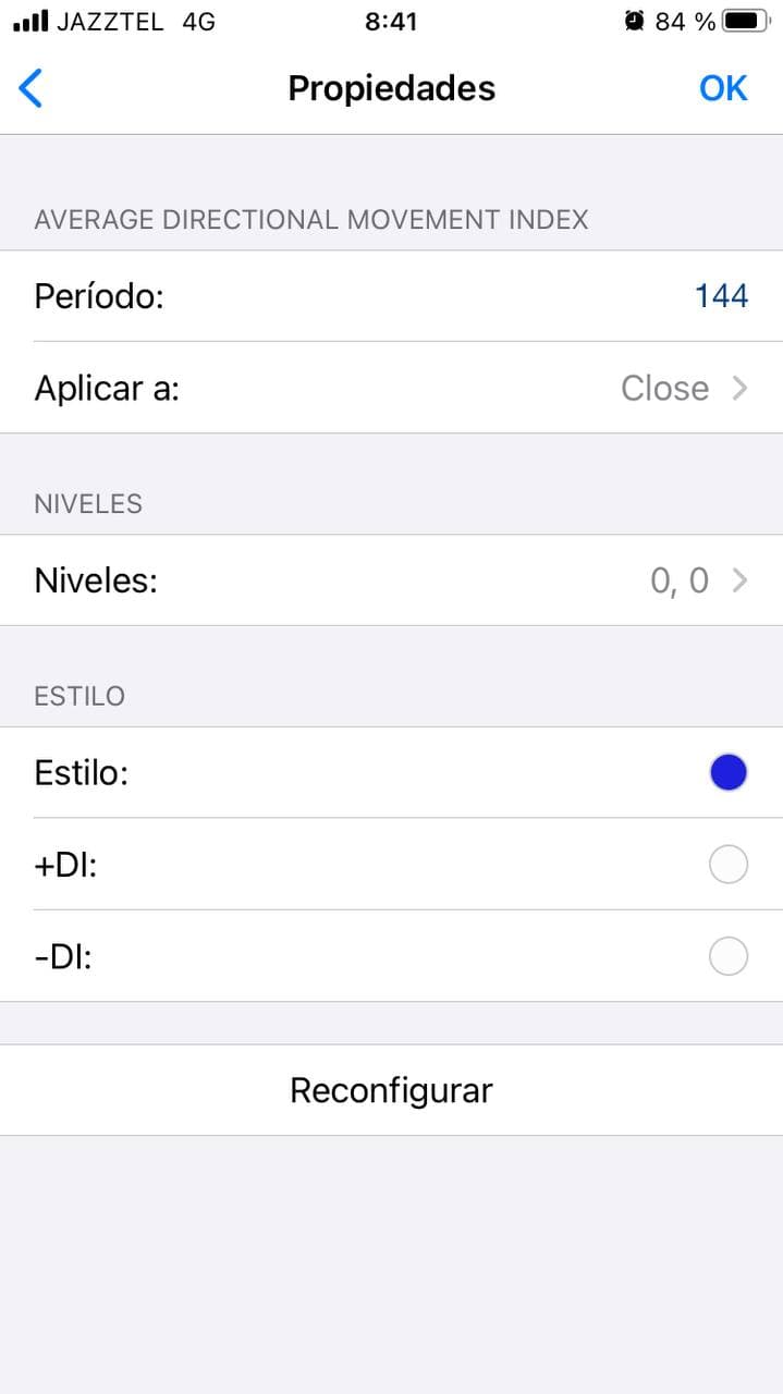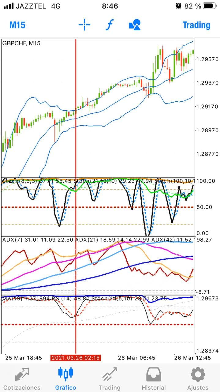 - Estilo de línea ADX: usa el mismo código de colores que en tu PC para identificar fácilmente cada periodo