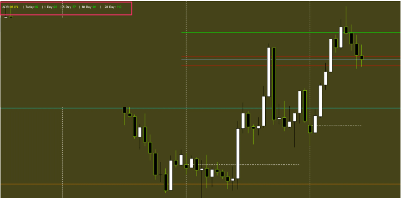 Por otro lado, el indicador de ADR o "Rango Diario Verdadero" nos va a indicador los pips que se puede mover el precio basado en la sesión anterior. Recordamos que según los entes reguladores, los Market Makers no pueden exceder de una cantidad diario y/o semanal de pips a mover en el mercado, que oscila entre los 200 y 600 pips semanales dependiendo del activo. Lo cual hace que esta herramienta sea imprescindible en la estrategia junto a los Pivot Points para operar. Más adelante hablaremos del ADR, pero te dejo un link sobre el Método Market Maker en donde Steve Mauro habla de esto.