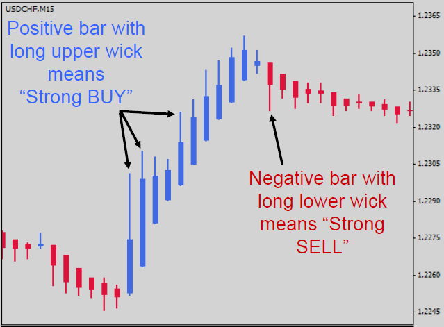 - La barra negativa es mucho más corta que la barra anterior o cambia a una barra negativa al cierre.